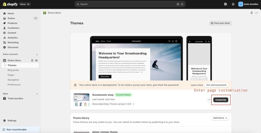 Open the Turbo Bundles app in your Shopify Admin