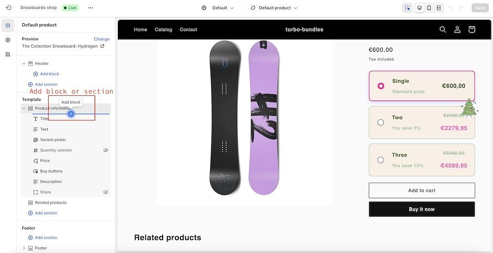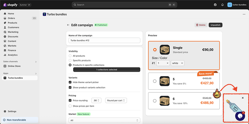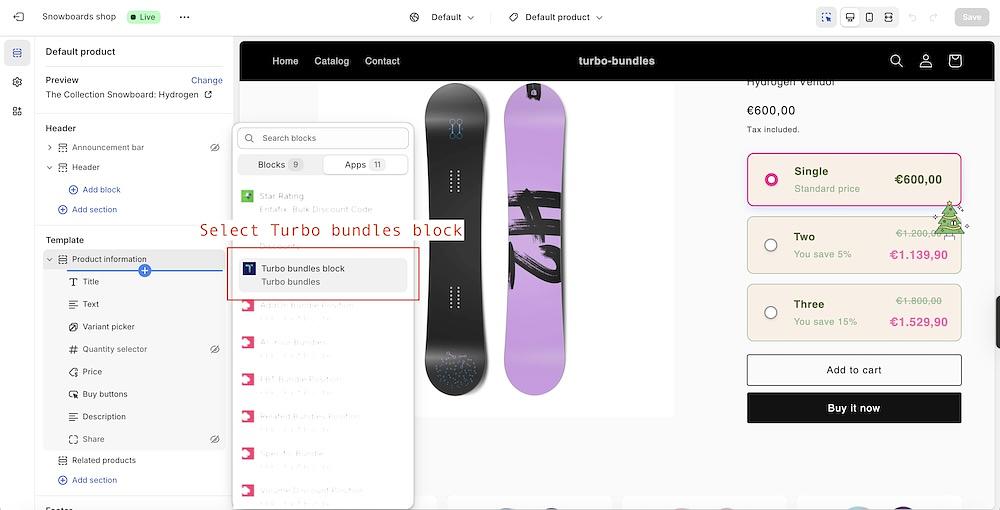With Turbo Bundles, you can easily create these types of offers using product bundles and percentage-based discounts. Here’s how: