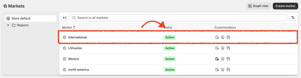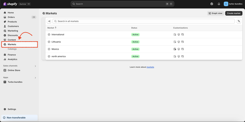 From your Shopify admin, navigate to Settings → Markets.