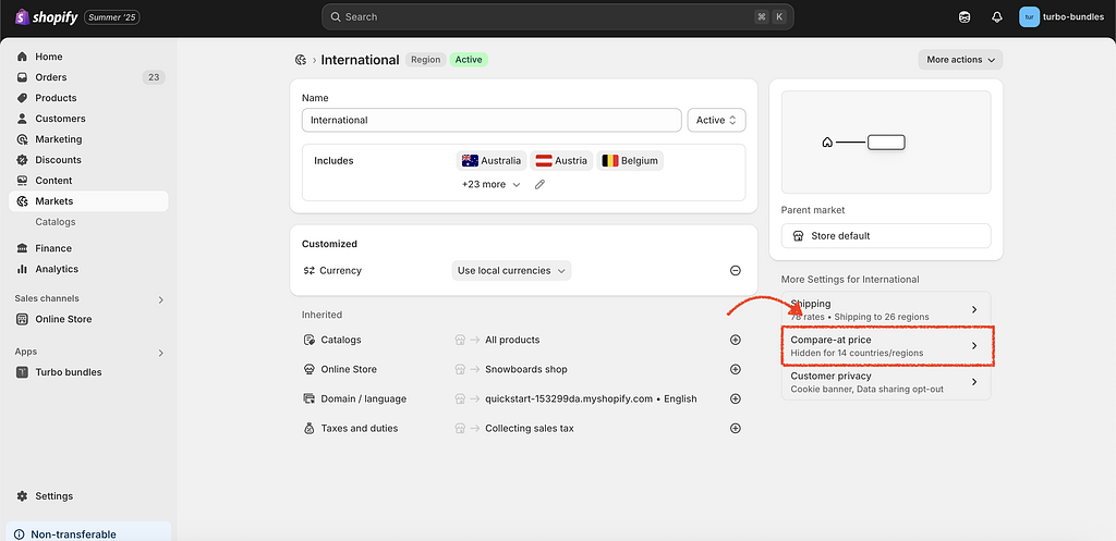The "compare-at price" is a powerful tool that shows customers the savings they're getting. If you've set up a bundle deal but the original price isn't showing up with a strikethrough, it might be due to a specific setting in your Shopify market preferences, particularly for stores selling in Europe.
