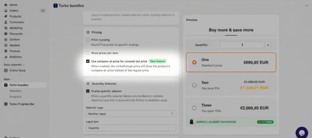 The compare-at price feature is available right now for all Turbo Bundles merchants—no plan upgrade required. Just enable the checkbox and watch your bundle deals become more compelling.