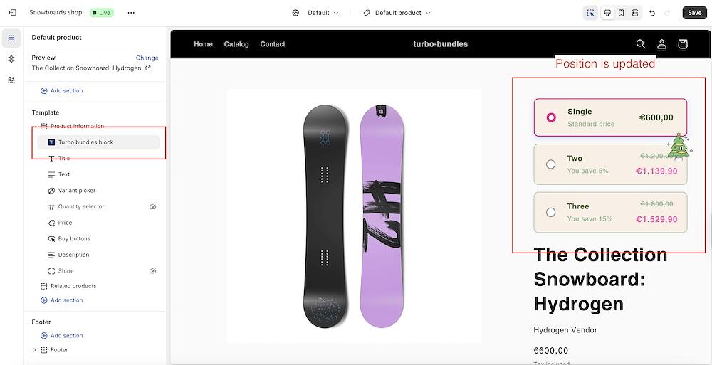 Click Save. The changes will automatically be reflected in the Turbo Bundles widget on your storefront.